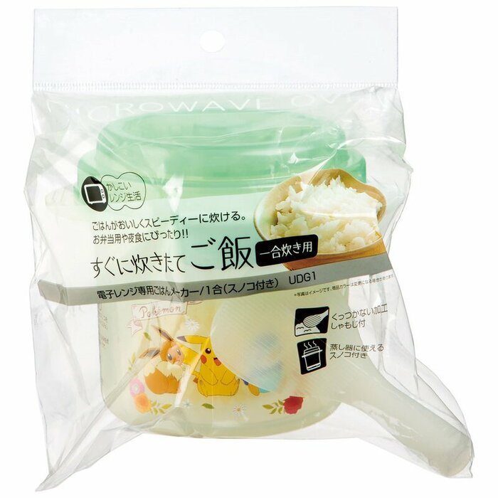 ピカチュウ、イーブイ、ポッチャマが描かれた、一合炊きサイズの「ご飯メーカー」。しゃもじ・スノコ付き。
