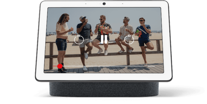 Google Nest Hub Maxは、10インチHD スクリーンとパワフルなステレオ スピーカーで YouTube 楽しむことができます。