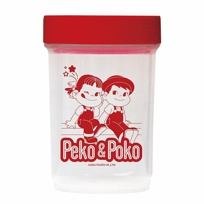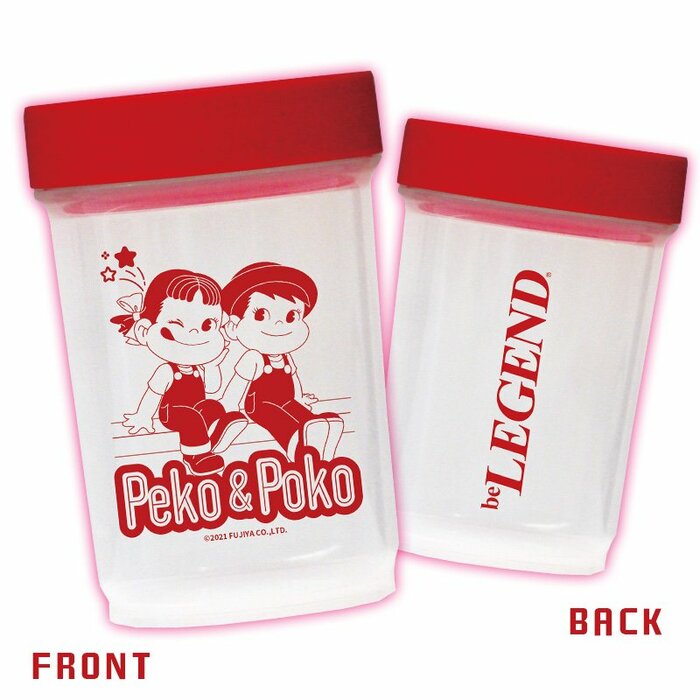 ペコちゃん&ポコちゃんのイラストが入ったキュートなシェイカーです。側面に50ml刻みの目盛りが付いているので、水の量を正確に量れます。「be LEGEND ミルキー」1食分をシェイクするのにぴったりの容量なので、プロテインとセットで使うのがおすすめ!