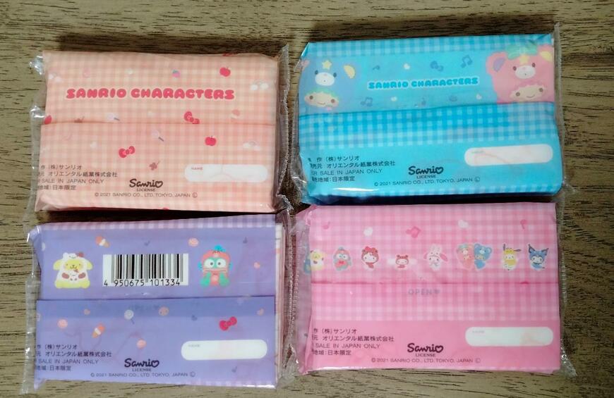 サンリオのポケットティッシュはかわいいデザインのアイテムです。すべてパッケージのイラストが違うのが魅力です。