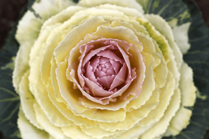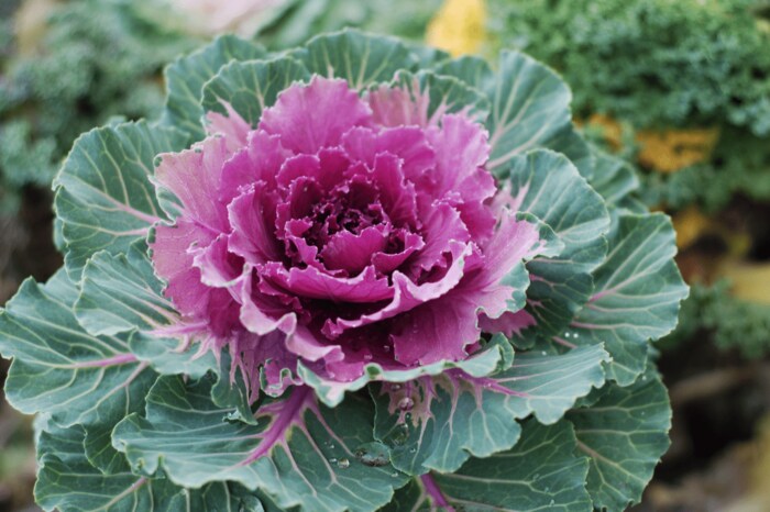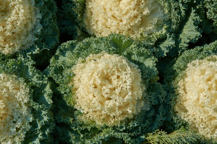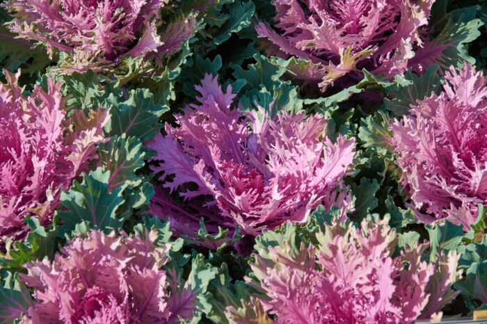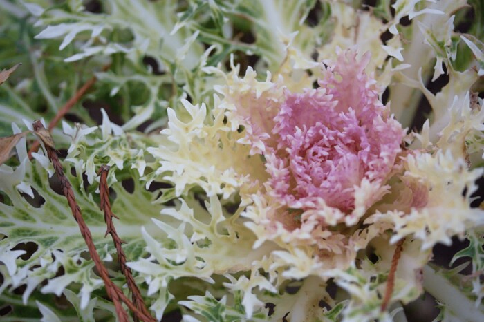 切れ込みが入った葉が特徴の切れ葉系。まるで雪の結晶のような葉が美しく、冬の寄せ植えにもピッタリです。「くじゃく」などの品種があります。