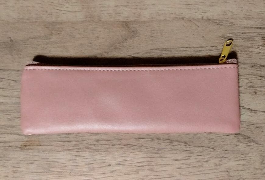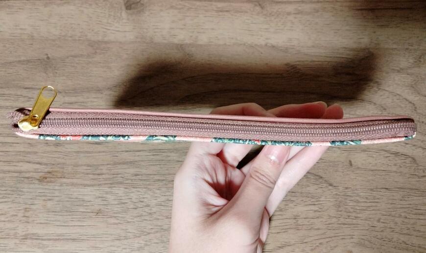 ファスナーのカラーもピンクです。ファスナーの持ち手部分はゴールドです。全体的に甘くて華やかな雰囲気です。