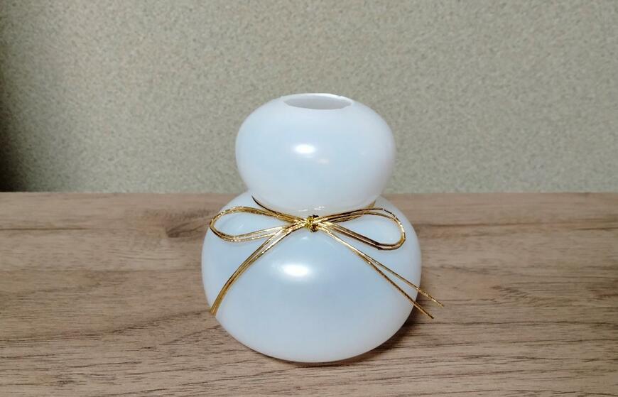 こちらがセリアで販売されている鏡餅の形の花瓶です。下の写真のように中身が空洞になっていて、花瓶としても活用できます。