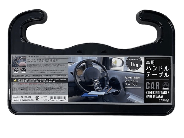 運転席でごはんを食べる際やちょっとした作業をしたいとき、ものの置き場に困った経験があるのでは?こちらはハンドルに引っ掛けるだけで運転席にテーブルができる優れもの。必要なときに即設置できるため、車に備えておきたいアイテムです。