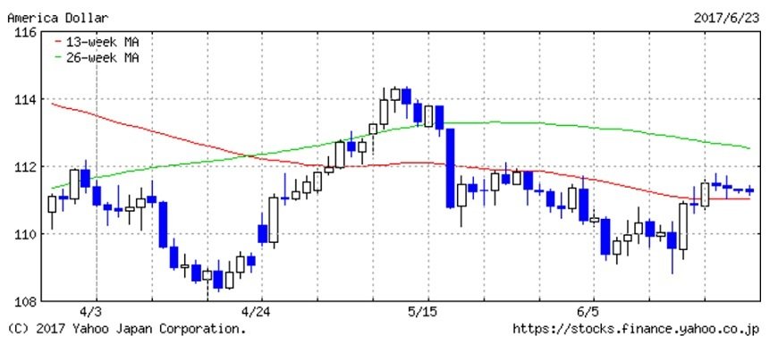 ドル/円は、110円台後半から112円前後のレンジ相場に位置しています。このレンジは5月下旬にも2週間レンジ相場が継続した実績があり、値動きが停滞しやすい場所となります。このレンジ相場を上下いずれに抜けるのかが、次の値動きを占う上で大きなポイントと言えます。