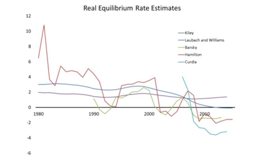 米国では利上げが行われつつあるとはいえ、前述の通り先進国全体で見ると歴史的な低金利で推移しています。しかしそれ以上に、投資不足により自然利子率が低下しているので、経済成長のための金融政策が効かなくなっているのでは、と言われています。