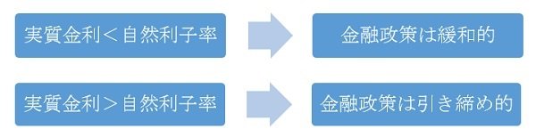 では、なぜ自然利子率が金融政策と関係があるかというと、自然利子率の水準と実際の金利(実質金利)の差によって、金融環境が緩和的か引き締め的かが決まるからです(図表4)。
