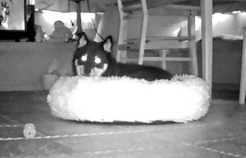 写真に写っているのは柴犬の天すけくんです。投稿によるとこちらの写真は、飼い主さんが見守りカメラを見たときの光景のようです。