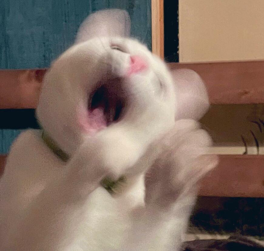遊んでいる最中だったのでしょうか、写り込んだ残像からは、猫ちゃんが非常に早く動き回っていたのではないかと想像できますね。