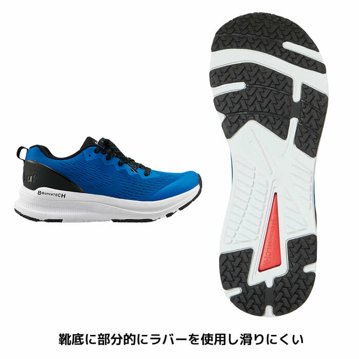 ワークマン独自の高反発ソールBounceTECH(バウンステック)搭載したアスレシューズです。軽量で高反発ソールだから、履き心地もバッチリ。靴底に全面ラバーを使用し滑りにくく、通気性が良いのでムレにくい毎日でも履きたくなるシューズです。