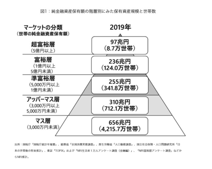 - マス層(3000万円未満):4215万7000世帯/656兆円