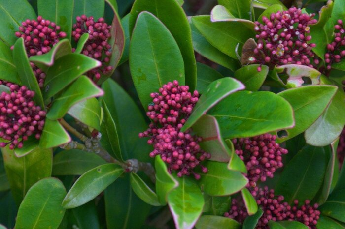 注目のお洒落植物のスキミア。切り花としてよく出回っているので、名前は知らなくても見たことがある人も多いかもしれません。