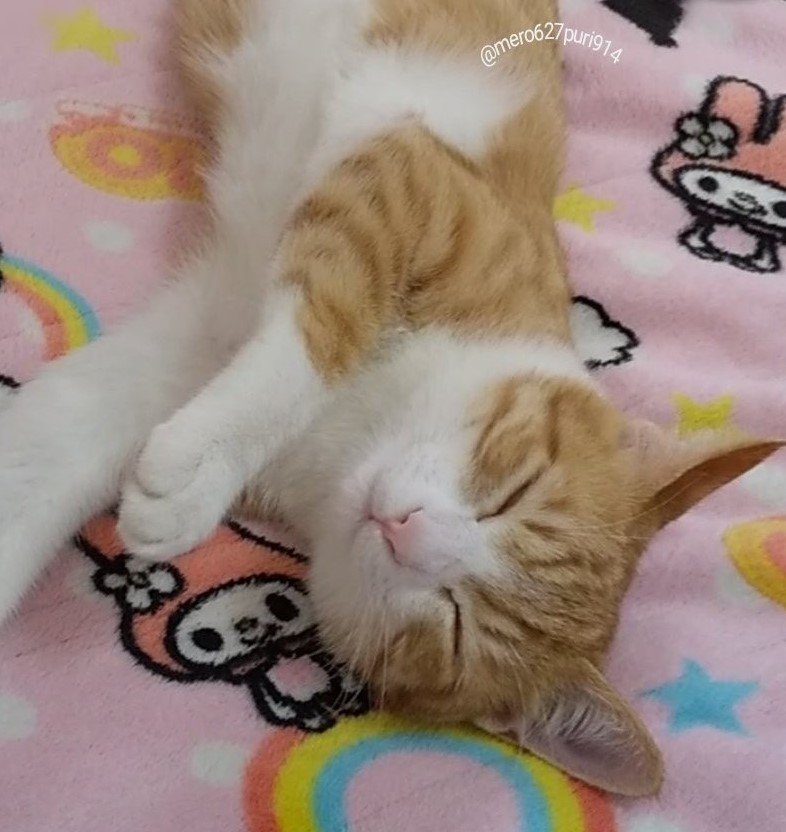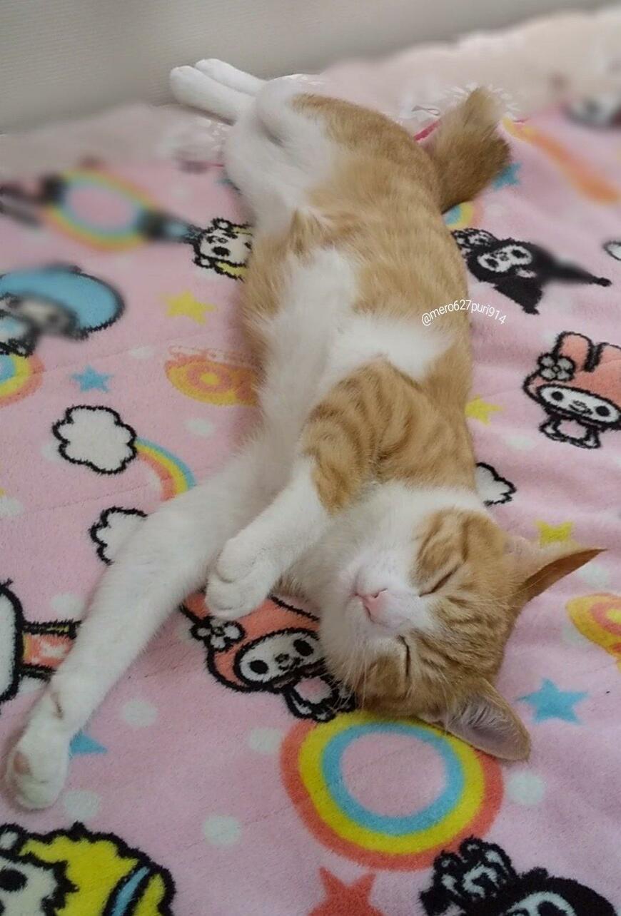 元保護猫の「プリン」ちゃん。無防備な寝姿にキュンとくる