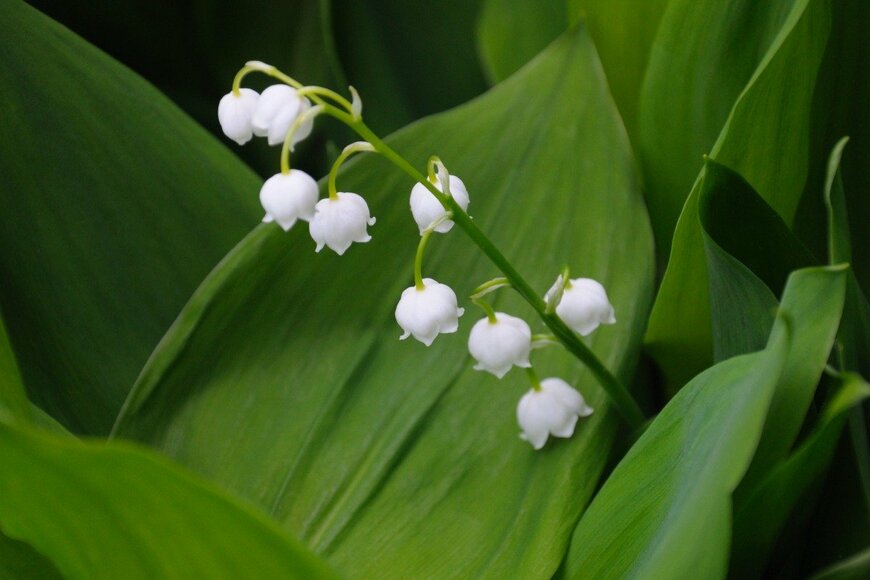 小さな釣鐘状の花を咲かせるスズランは春に開花する多年草。ホワイトやピンクの花が楚々とした雰囲気で、庭を爽やかに演出します。