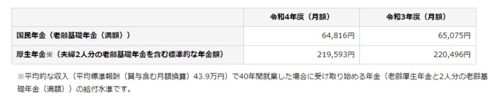 日本年金機構によると、2022年度における「標準的な夫婦」が受け取る年金は月額21万9593円です。
