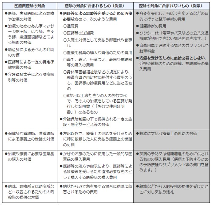 医療費控除の対象となる医療費は、以下に該当するものです。