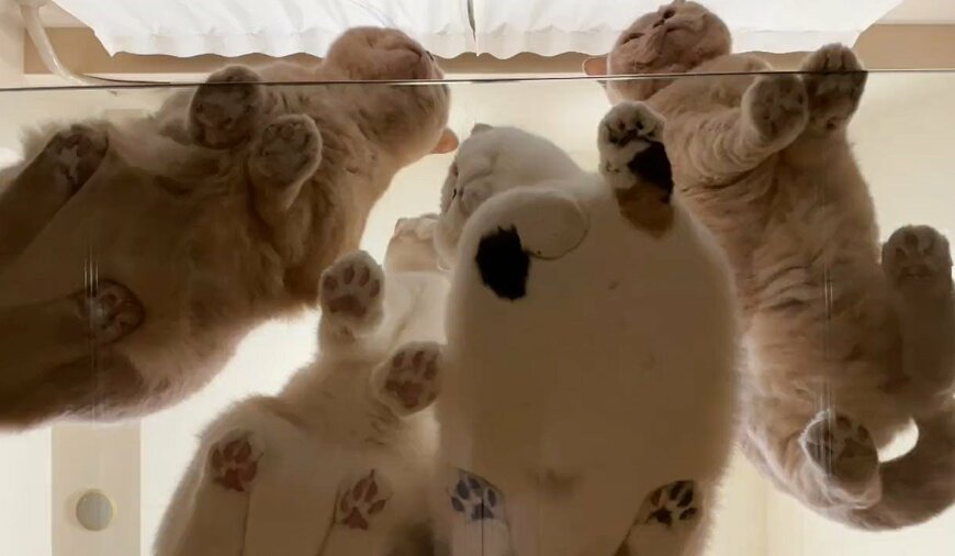ガラステーブルの下から猫ちゃんの行動を覗いた映像が話題に