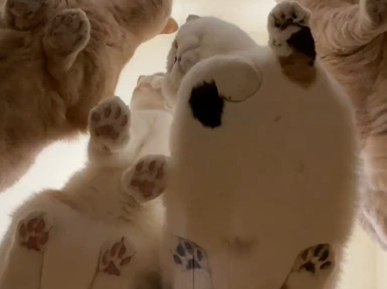 そんな猫ちゃんたちの愛らしい行動を下から覗くと……?