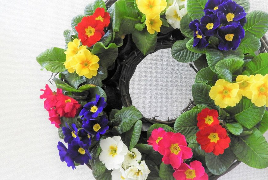 園芸店ではワイヤーで丸くリース型に作られたハンギングプランターも売られています。お好みの花をギッシリ植え込んで作ったリースを、ドアや門扉にかけるとオシャレです。