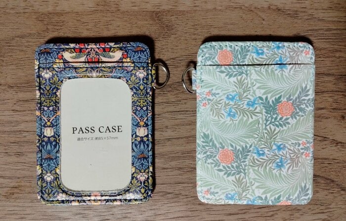 セリアのウィリアム・モリスデザインのパスケースは、両面プリントのアイテムです。表面にも裏面にもモリスのデザインがきちんとプリントされています。