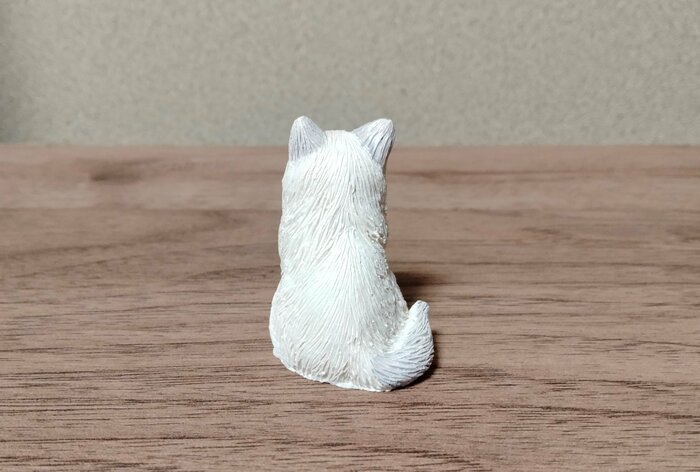 後ろ姿もかわいいです。耳としっぽがグレーカラーになっているのも凝っています。