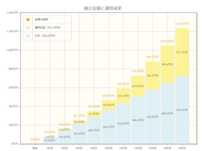 つみたてNISAシミュレーション「月3万円・年率3%・20年間」