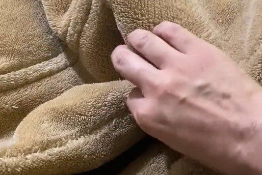 動画の冒頭には、モゾモゾと動く布団と飼い主さんの手が写っています。
