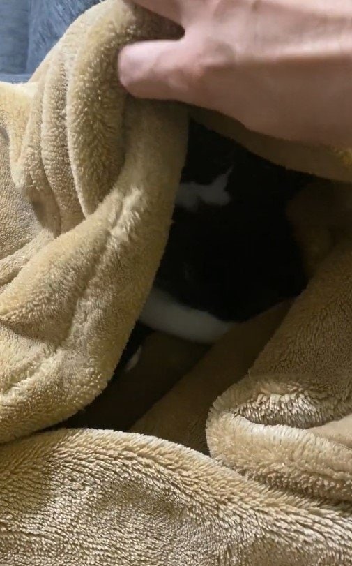 「布団が小刻みに…」中には可愛い猫ちゃんが!