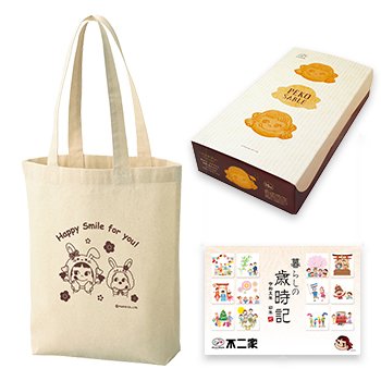 ・詰め合わせ内容:ペコサブレ(15枚入)1箱、2023年カレンダー“暮らしの歳時記”(「ペコちゃんのほっぺ」12個分引換券付き)、ペコちゃんバッグ(卯デザイン)(ペコちゃんのほっぺ(各種)1個分引換券は、毎月の各ページに付いています。使用期間は各月1日~月末までです)
