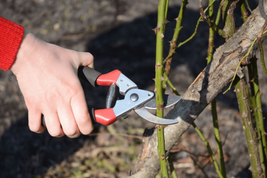 内向きに伸びている枝や細い枝、枯れて茶色くなった枝も切り落としておきましょう。冬にしっかり剪定することで株の勢いや花付きが大きく左右されます。