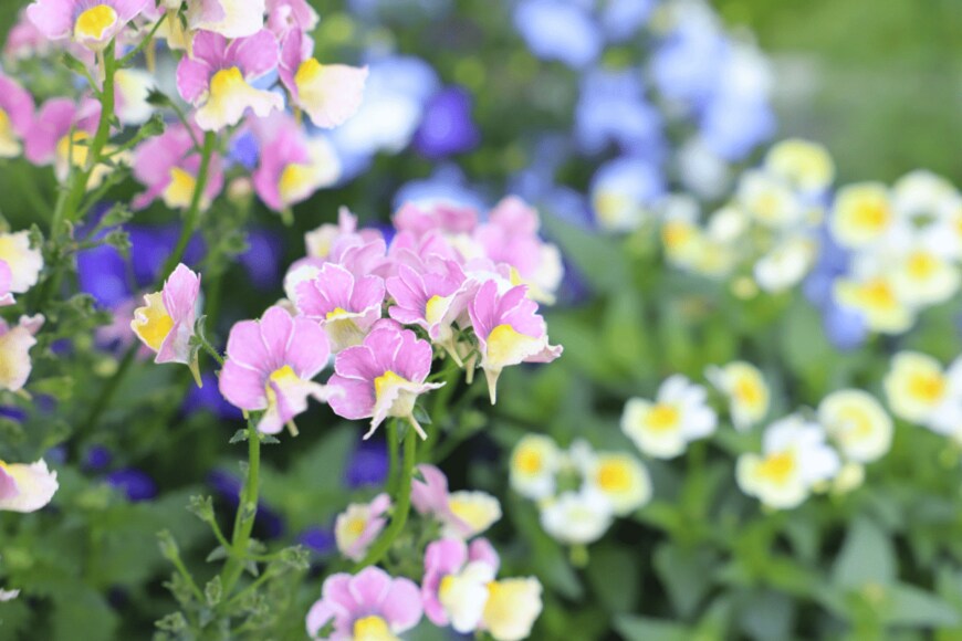 フリフリのカワイイ花が鈴なりに咲くネメシア。カラフルなパステルカラーで冬の庭を明るく華やかに彩ります。冬から梅雨前ごろまで咲き続けるのもうれしいところです。※参考価格:200~400円前後(3号ポット苗)