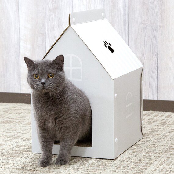 屋根には肉球型の穴が開いていて、おもちゃをたらして、猫と遊ぶことができるのも魅力です。