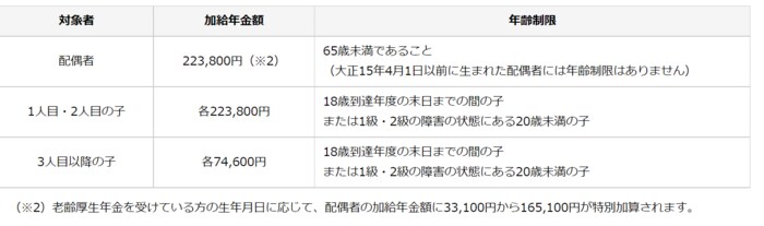(※2)老齢厚生年金を受けている方の生年月日に応じて、配偶者の加給年金額に特別加算されます。