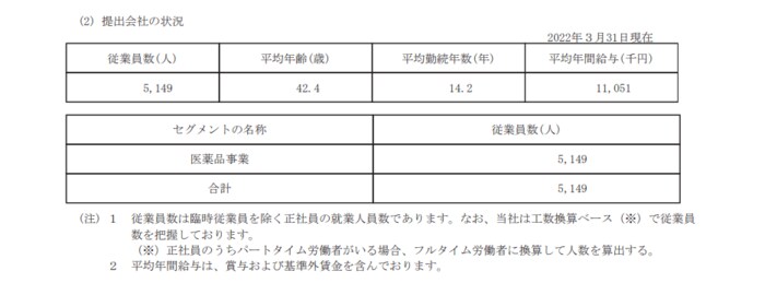 武田薬品工業の給料はいくらか。平均年齢・勤続年数も【2022年更新版】 就職と転職の企業調査・分析シリーズ 2023.01.02 21:00 公開 執筆者LIMO編集部 copy URL 目次[開く] 1. 武田薬品工業の平均年間給与はいくらか 2. 武田薬品工業の従業員数は何人か 3. まとめにかえて 参考資料 1. 武田薬品工業の平均年間給与はいくらか 武田薬品工業の2022年3月時点での従業員数、平均年齢、平均勤続年数および平均年間給与は以下の通りです。 出所:武田薬品工業「有価証券報告書」 すべての画像を見る(2枚) 従業員数:5149人 平均年齢:42.4歳 平均勤続年数:14.2年 平均年間給与:1105万1000円 ※平均年間給与は、賞与及び基準外賃金を含んでおります。 2. 武田薬品工業の従業員数は何人か < 1 2 3 4 > 関連タグ #就職 #面接 #武田薬品工業 #給与 #年収 注目コンテンツ 女性特有のがんは40代から増える?女性向け医療保険で備える[PR] 退院後の通院治療に3000円。通院保障がつけられる医療保険はこれ![PR] 30秒でオススメの医療保険の特約がわかる!保障で悩むならまずは診断[PR]