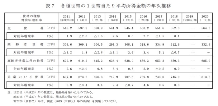 厚生労働省「2021年 国民生活基礎調査の概況」によると、「児童のいる世帯」の平均所得金額は2020年で813万5000円です。ここでいう「児童」とは「18歳未満の未婚の者」です。