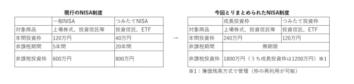 また、非課税保有期間を無期限化し、年間投資枠を現行の一般NISAで240万円、つみたてNISAで120万円に拡大することについてもふれています。