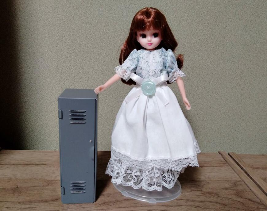 ダイソーのミニチュアロッカーはリカちゃんよりもやや小さいサイズ感! ぬいぐるみとの相性がよさそう