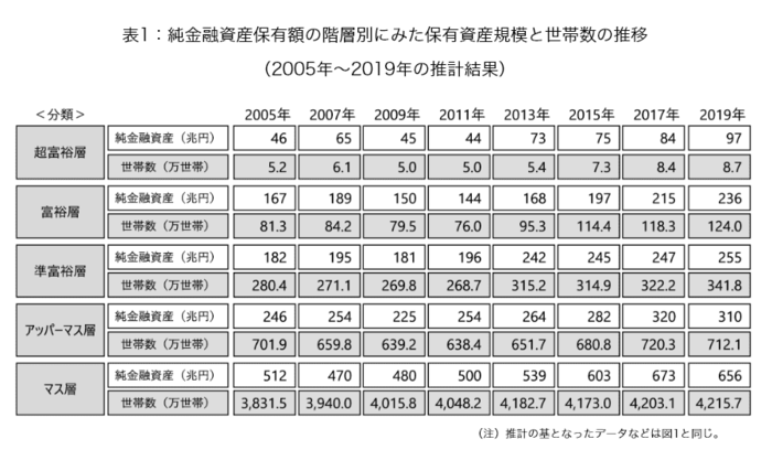 - 富裕層:世帯の純金融資産保有額が1億円以上5億円未満