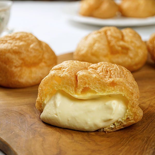 「シュークリーム ザ クラシック」は、生地の柔らかさとしっとりした食感にこだわった、まさに「くりーむ」を食べるシュークリームです。しっとりとした柔らかな生地は、八天堂のなめらかなクリームと相まって上品なハーモニーを生み出しています。