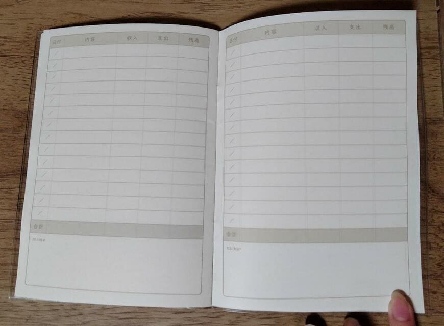 モリスデザインの家計簿の中身は、写真のようにシンプルなデザインになっています。