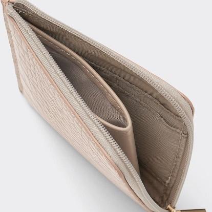 GUのミニ財布は、写真のようにL字型に開くアイテムとなっています。中央の小銭入れに沿って、紙幣をきれいに収めることができます。