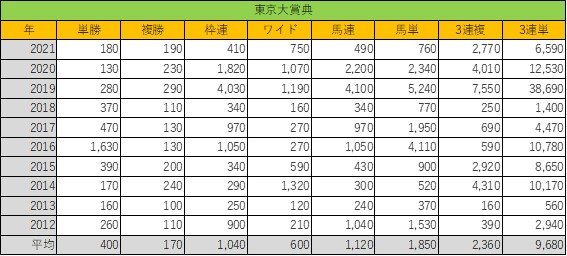 馬単、3連複では万馬券が出ておらず、毎年のように堅い決着となっていることが分かります。