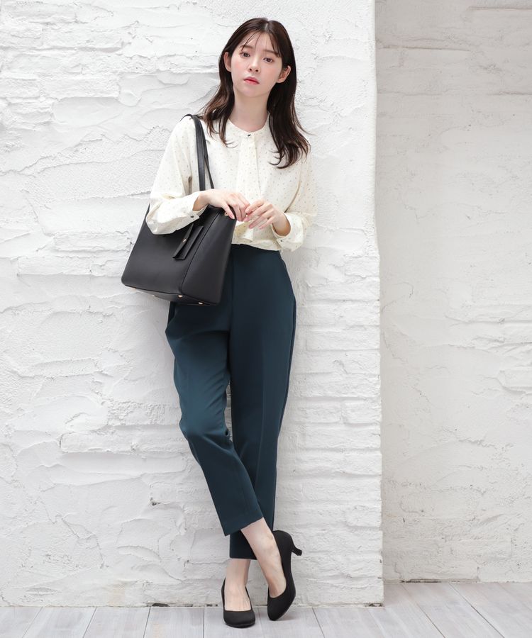 甘すぎないカラーなので、大人の女性のオフィスカジュアルコーデとの相性もよさそうです。スーツスタイルにも似合いそうなバッグです。