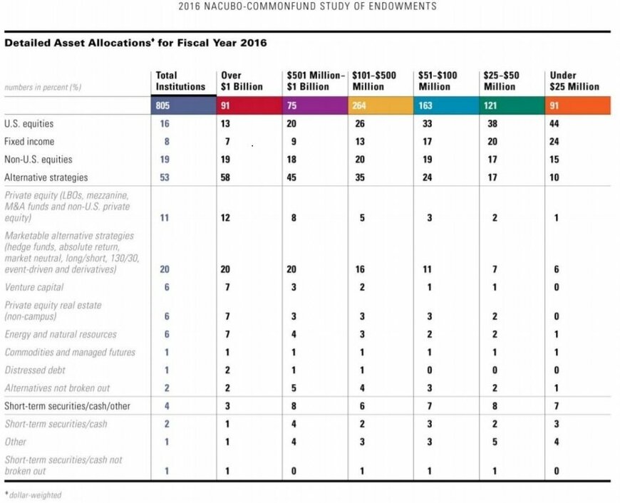 たとえば、ハーバード大学は4兆円程度の運用資産を有していますが、これほど大きな運用資産となると、運用自体そう簡単ではありません。米国10年国債が5%程度の利回りで回っていた時代ならいざ知らず、現在その利回りは2%程度しかありませんので、それだけでは完全にインフレと運用コストで赤字になります。