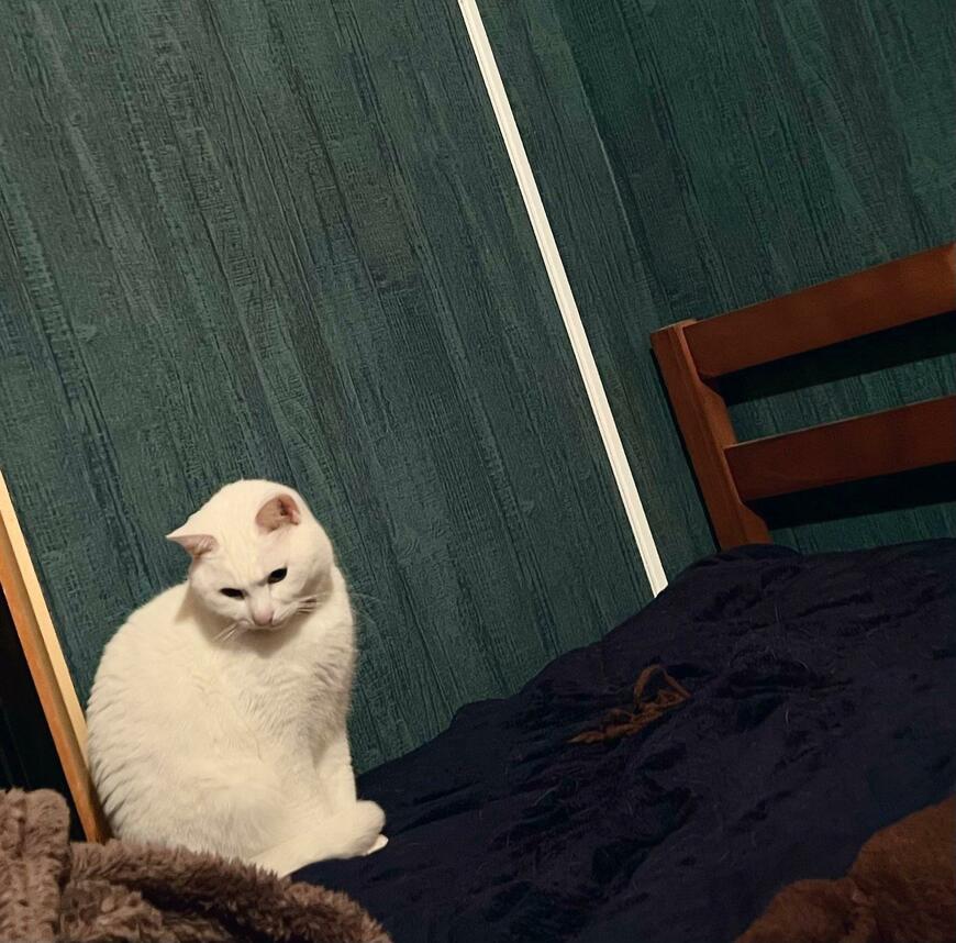 写真を見てみると、ベッドらしき場所で待機する猫ちゃんの姿が写っていました。近くにいたはずの飼い主さんがいないことに気づいて、寂しさが溢れてしまったのでしょうか……?