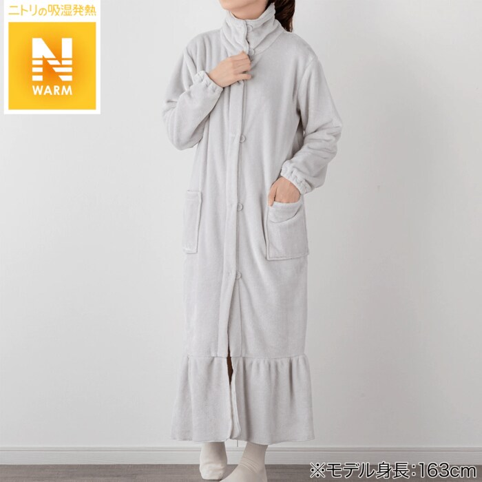 こちらもNウォームを使った、フード付きの着る毛布。静電気軽減機能と保湿素材、そして軽量という、冬にうれしいポイントを備えています。ミドル丈なら移動もしやすく、家事がしやすいのがうれしい。使用していないときはコンパクトになるため、収納したいときにもいいでしょう。