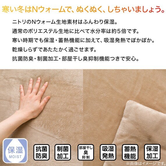 ただの毛布かと思いきや、腕を通す穴がついているのが特徴で、毛布に入ってスマホチェックしても肩や胸元が寒くない!現代人にぴったりの着る毛布です。体から発散する水分を熱に変えるNウォームがふんわり保湿してくれるため、乾燥しがちな冬にも最適。在宅ワークや勉強でも活用できます。