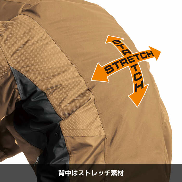 「超撥水2WAYシェフジャケット」は、作業着のようなタフな雰囲気を残しながらも日常使いしやすいデザインの防寒着。オールシーズン使え、裾のアジャスターを絞ればシルエットが変えられます。通気性がよく撥水加工もされている機能性の高さもポイントです。
