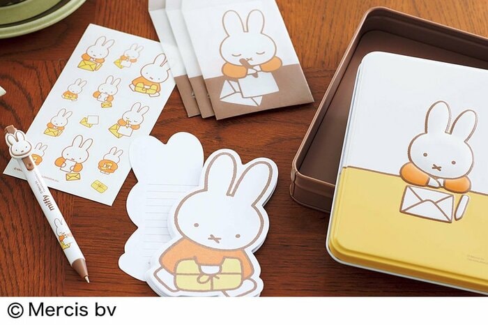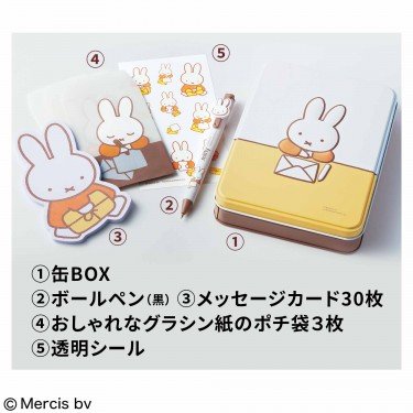 缶ボックスはハガキが収まるサイズ感で、もらった年賀状を整理収納しておくのにも便利です。また、ボールペンはぷっくりとしたミッフィーが手帳やノートにはさんだときのかわいいアクセントになってくれるので、オフィスや学校でも活躍してくれそうです。