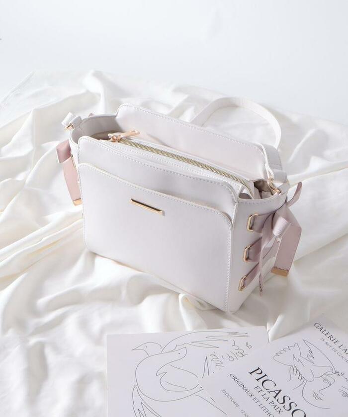 サイド部分は、写真のようにかわいいリボンでレースアップされています。